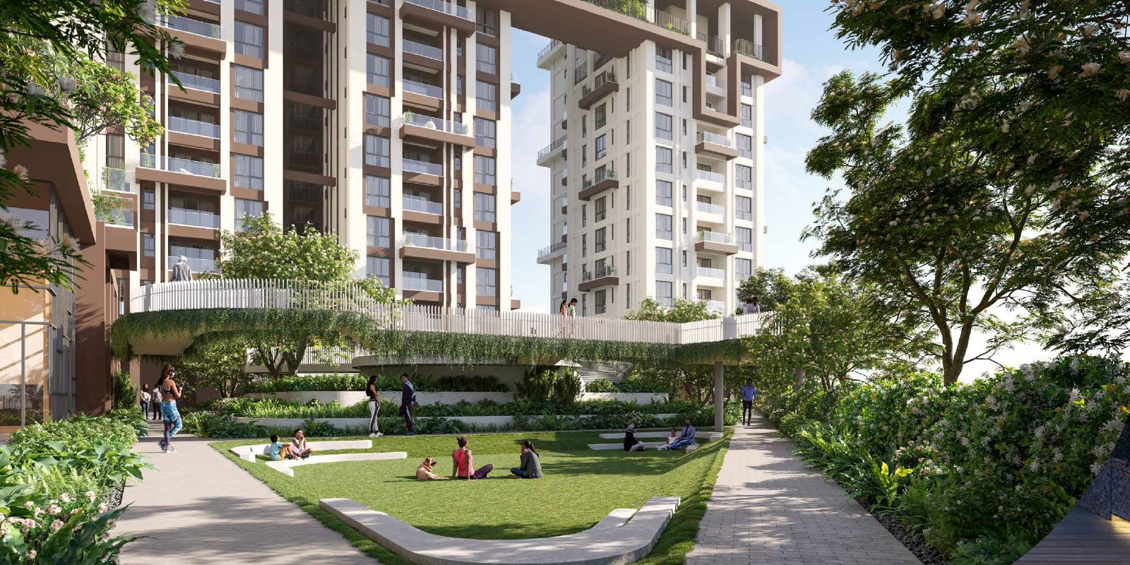 The calm, green spaces of Udyatt are a successful example of urban forestation and a guiding factor of its design. From the minute you enter, you are transported to a haven of sheer bliss. Lush greens, diverse butterflies, hundreds of trees and tropical flowers interact with the open spaces throughout. Resulting in cleaner air, a reduction of CO2 emissions and a higher chance of spotting a rare birdy.